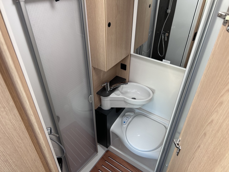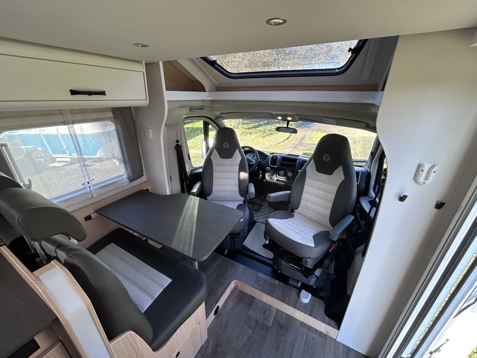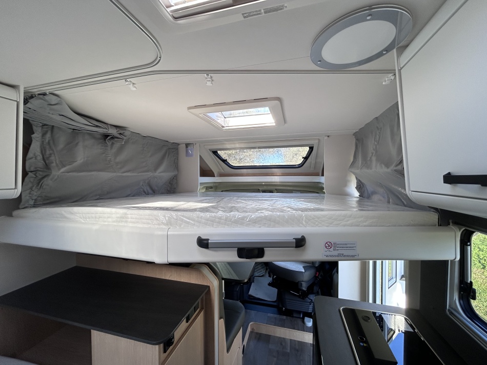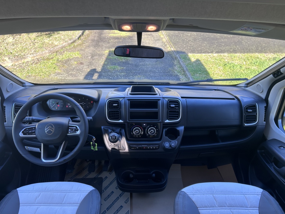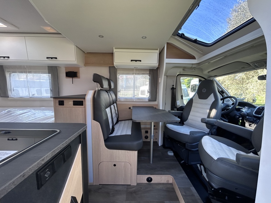EQUIPEMENTS DE SERIE : + PACK SOLEIL (Porte-cellule avec baie et moustiquaire / lanterneau panoramique 70*50 / Lanterneau transparent 40*40) + PACK JANTES ALU BI-TON (Volant et pommeau en cuir / tableau de bord finition alu / jantes alu 16") LANTERNEAU PANORAMIQUE + BAIES A CADRE + MOUSTIQUAIRE + MARCHE PIED ELEC + SYSTEME ISOFIX + RALLONGE DE TABLE + LIT PAVILLON AVEC CLIMA-PLUX + PANNEAU SOLAIRE 100W AVEC MPPT + SUPPORT TV AVEC PRE-CABLAGE + CABINE DE TOILETTE AU FOND AVEC DOUCHE INTEGREE + BARRE SECHE-SERVIETTE + LANTERNEAU WC AVEC MOUSTIQUAIRE +